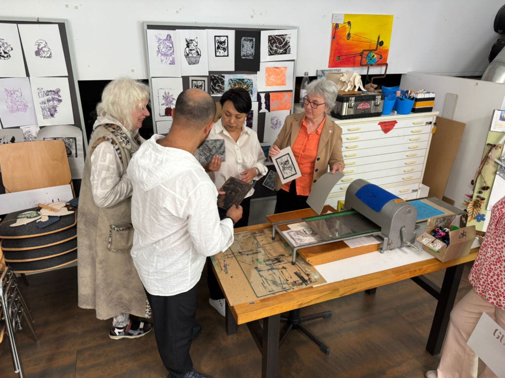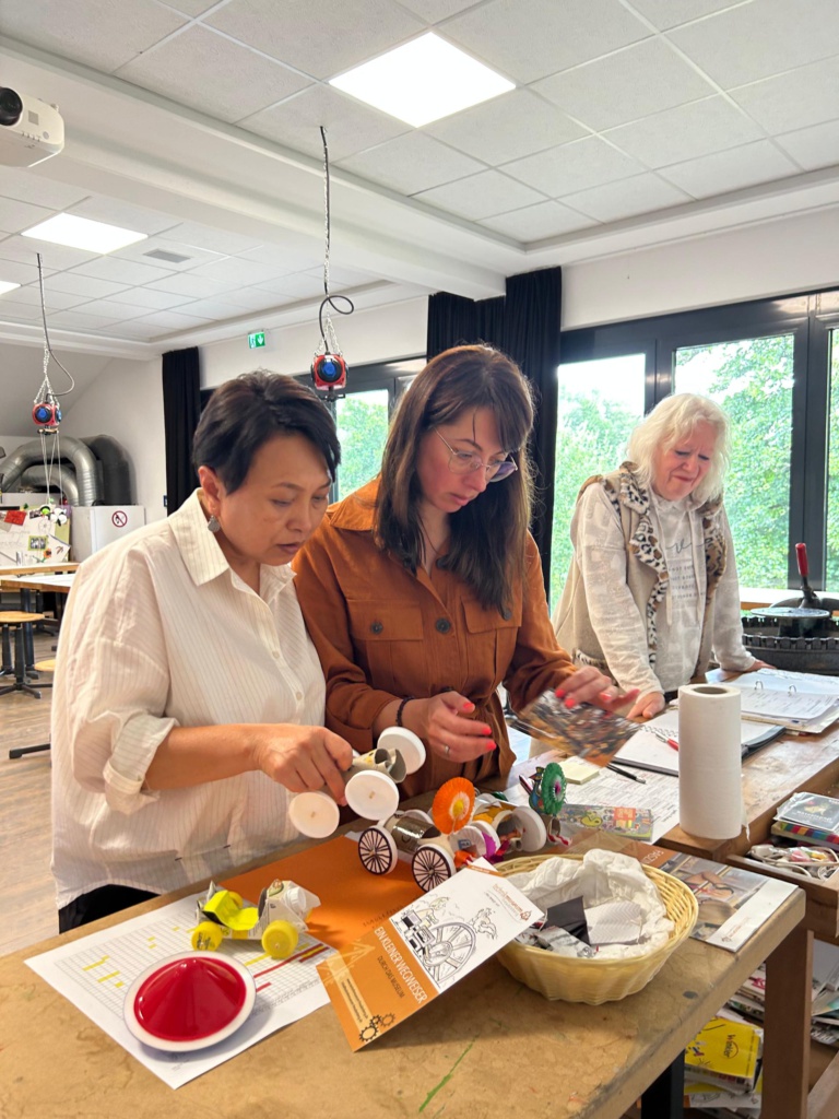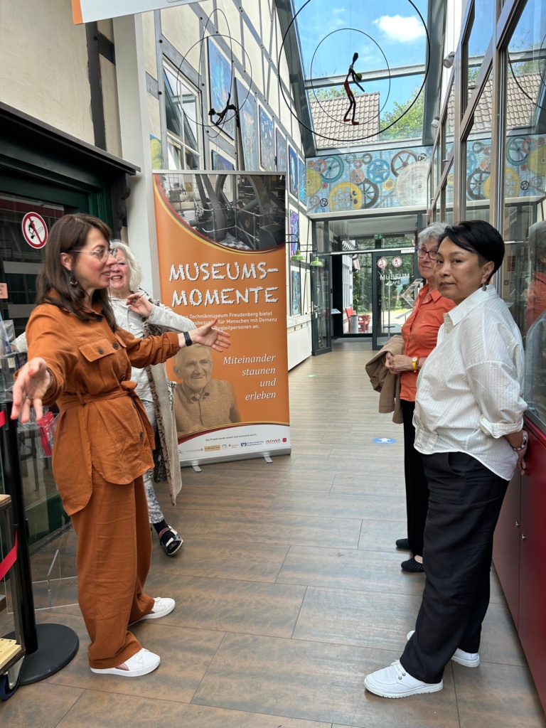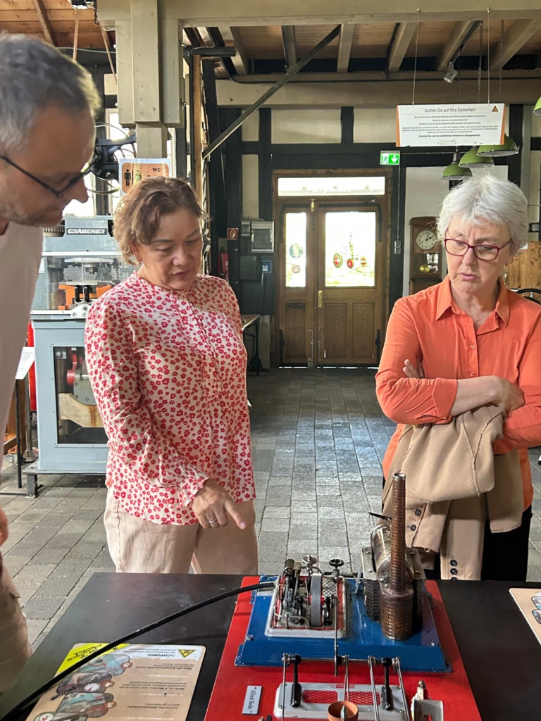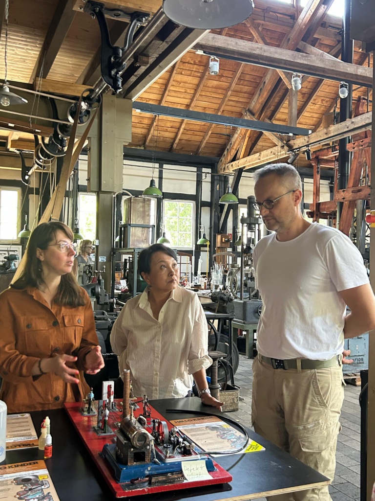 The guests then visited the Freudenberg Technology Museum, a cooperation partner of KUNA e.V., and learned about the extracurricular educational facility and the courses offered there for adults. The head of the MINT workshop, Gudrun Denker, presented the offerings in detail. Next on the agenda were educational venues for young people. Together, the group considered how the experience gained from KUNA e.V.’s projects could be applied in Kyrgyzstan. The visit to the Technology Museum was accompanied by KUNA e.V. board member Alena Dubino, who also volunteers as a leader of artistic workshops for women..